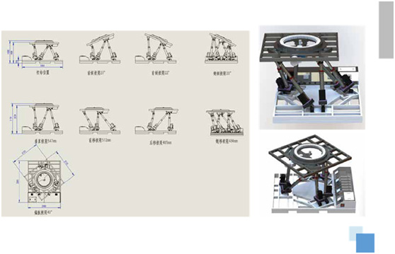 六自由度旋转模拟平台:尺寸4*3*1.5米,有效负载:3T。俯仰滚转:±30°偏航:±45°。